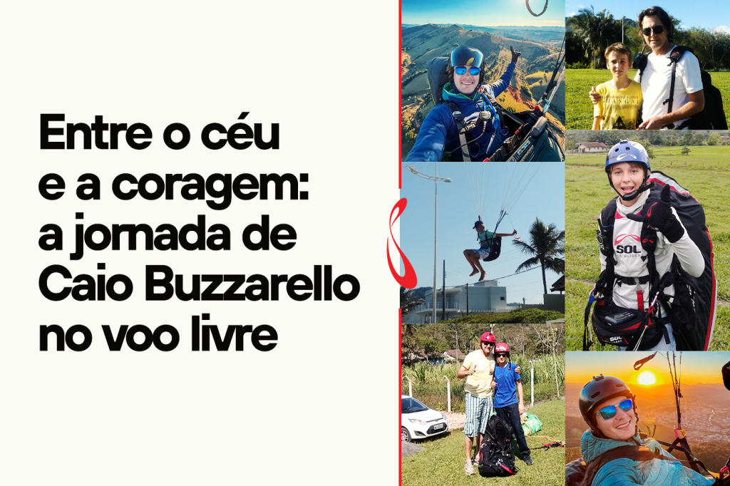 Em Jaraguá do Sul, o céu sempre foi cenário de grandes histórias e a do Caio Buzzarello é uma delas. Filho de Luís Carlos Buzzarello, um dos pioneiros do voo livre na cidade, Caio cresceu entre montanhas, ventos e decolagens. Ainda criança, já sabia que aquele era o seu lugar: lá no alto.